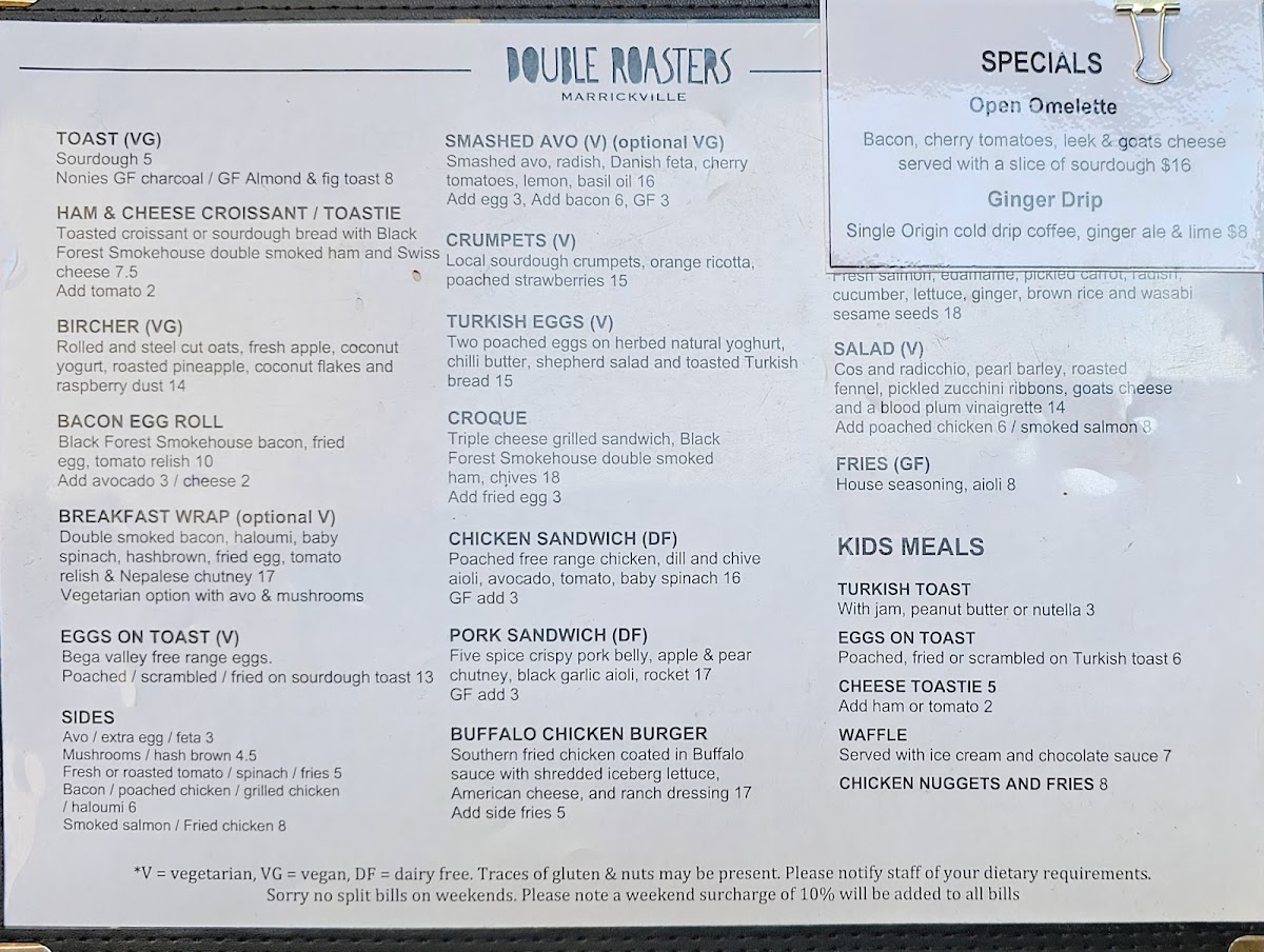 Welcome to Double Roasters Cafe, a charming haven for coffee and food enthusiasts nestled in Marrickville at 199 Victoria Rd. This cafe prides itself on high-quality offerings, featuring house-baked delights like the Carrot Cake with Cream Cheese Frosting and Chocolate & Macadamia Brownies, perfect for those with a sweet tooth.